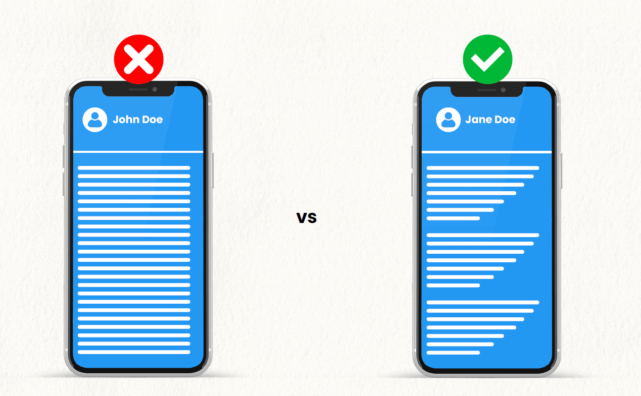 Use Short Paragraphs and Lists - Break up any large blocks of text into short paragraphs and lists. Big chunks of text are difficult to digest on small smartphone screens. Short paragraphs create a whitespace to rest the eyes. Lists make the post more scannable and approachable.