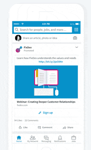 Boost Blog Content To Build Awareness - Promote your blog content to your target audience using Sponsored Content. When running Sponsored Content campaigns, write headlines that are under 150 characters for more engagement. Try to keep descriptive copy under 70 characters to keep content from being truncated. Use larger images and include people when relevant to get the attention of your audience as they are scrolling through their feed.