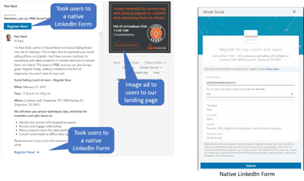 - Native Lead Gen Increases Response Rates Exponentially - Native Lead Gen allows you to convert the user natively on LinkedIn vs. sending them to a landing page. Native Lead Gen also prepopulates the native conversion form with the user's data. These two factors boost conversion rates exponentially!