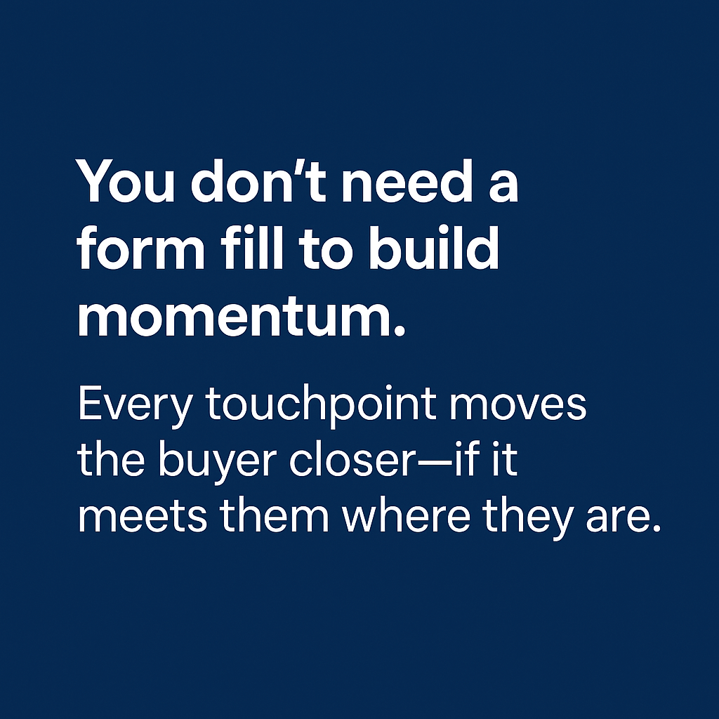 Most buyers won’t convert on the first visit, and many won’t fill out a form. But that doesn’t mean they’re lost; it just means they’re not ready yet. Your job is to stay top of mind and build familiarity over time so that when the moment does come, they already trust you.