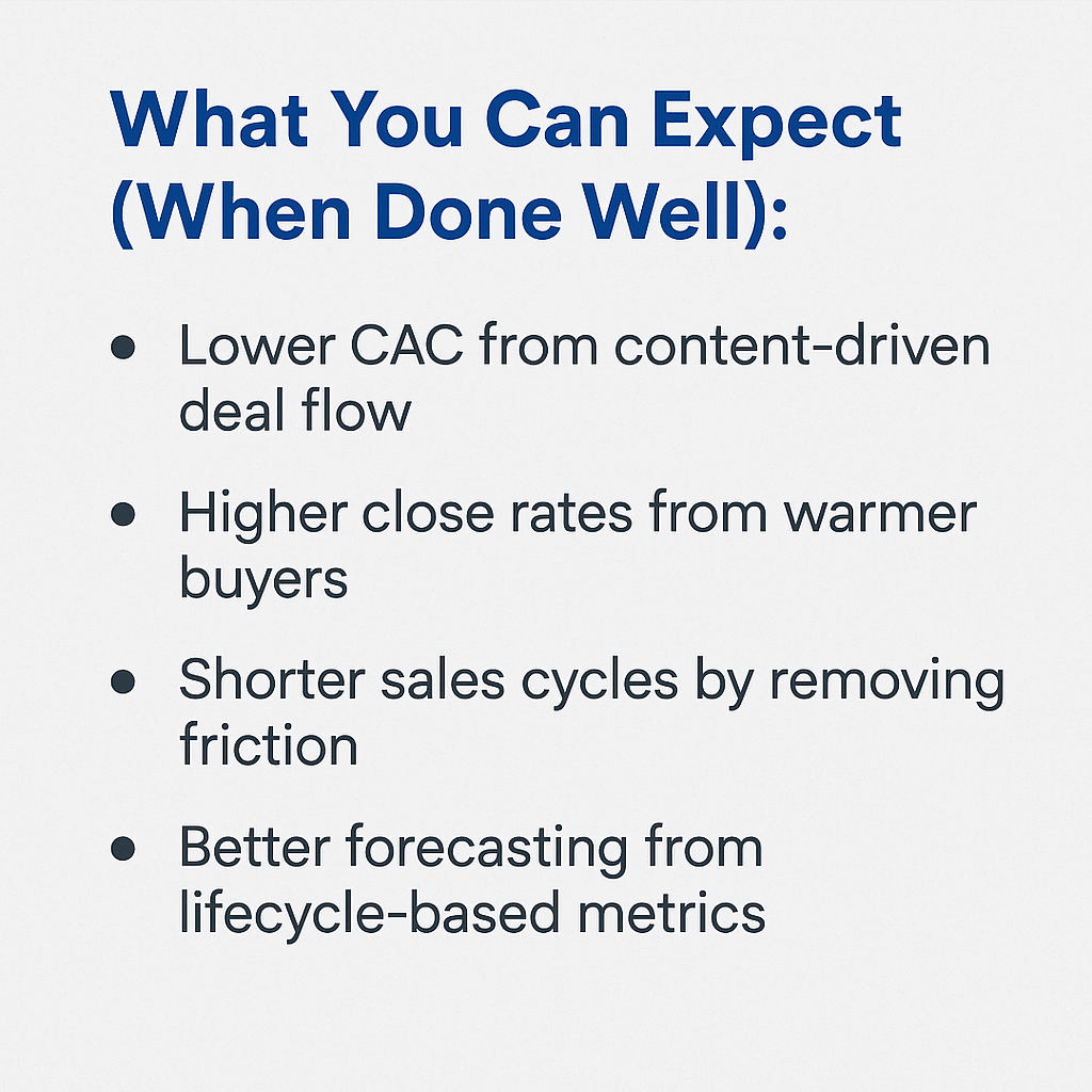 - Run serialized, no-pitch events (like our B2B Growth Show). 80% of our pipeline has been influenced by these events. Proof that consistent education builds authority and intent over time.
